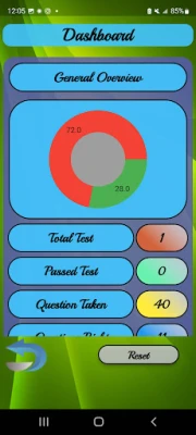 A Statistics section that help the user to keep track of all the statistics such as general score, number of questions taken, number of tests taken, and much more.