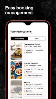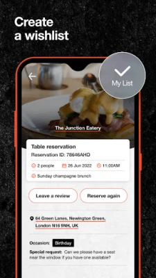 Easy booking management. The Dish Cult app allows you to easily modify or cancel your reservation, which means no more phone calls to the restaurant. Preview upcoming reservations and share the details with your friends from the app. Rate and review your previous bookings within the app, or relive an amazing experience by re-booking with a few taps.