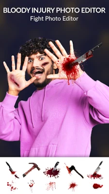 Fight Photo Editor with injury prank stickers to add bloody wounds, bruising, blood sprays and fight blood on photos! This Fight Camera is the best street fight photo editor app to create the face selfies easily using this cool battle stickers and fight effects!