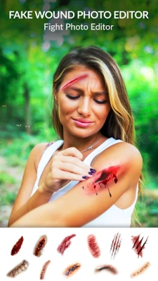 Real Blood Photo Editor is to set fight stickers on your body photos to make the scary looks. Fight Photo Editor Battle Effects is a car accident prank app which has the war scene editor which offers you a variety of the fight stickers, add text to photos free and face color effects.